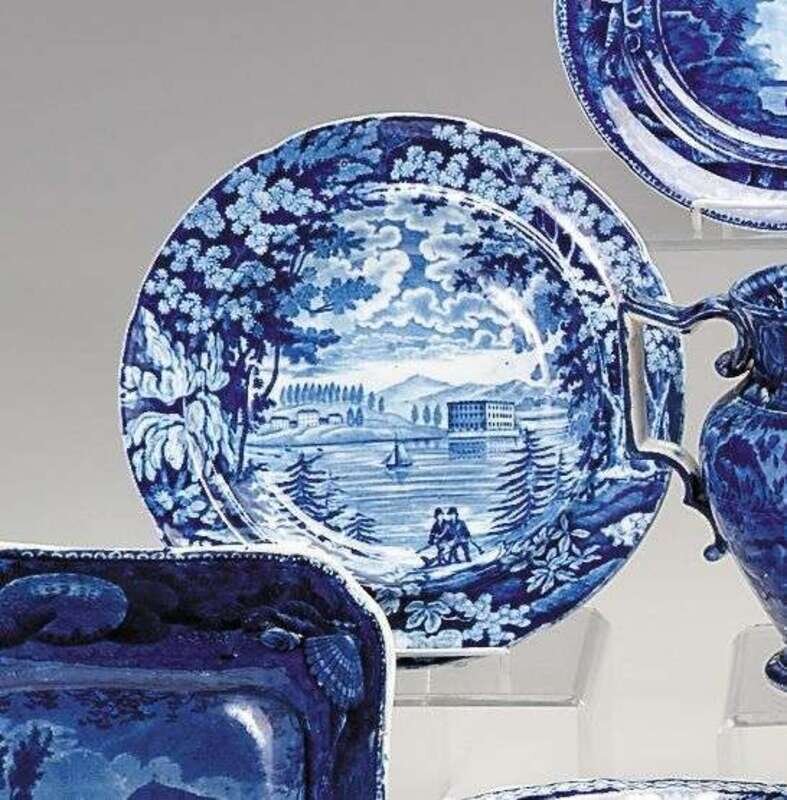 Decorated with an exceptionally rare varient of "View of Governor's Island," without border.