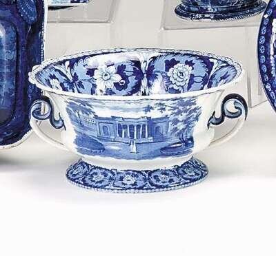 Historical blue transferware footed compote john & william ridgway, hanley, 1814-1830