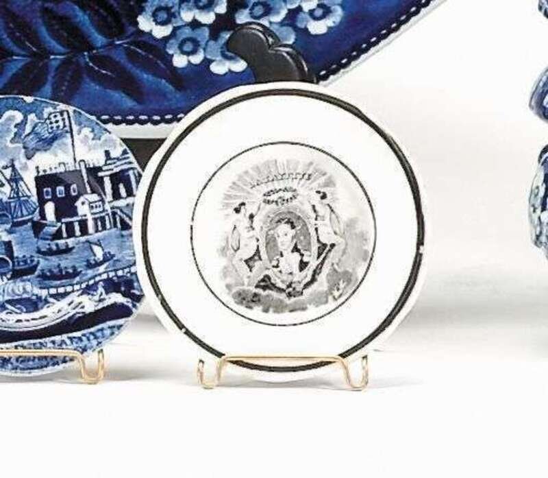 Black transferware cup plate