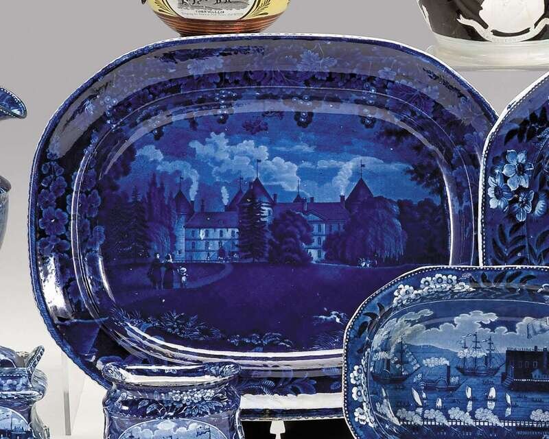 Historical blue transferware platter enoch wood and sons, burslem, 1819-1846