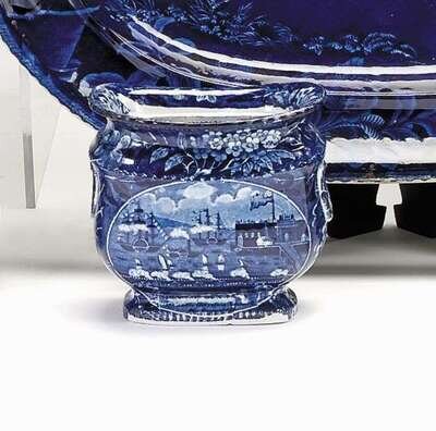 Historical blue transferware sugar bowl james and ralph clews, cobridge, 1829-1836
