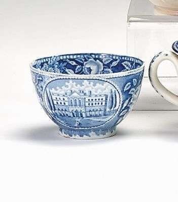 Historical blue transferware teabowl ralph stevenson, cobridge, 1815-1840