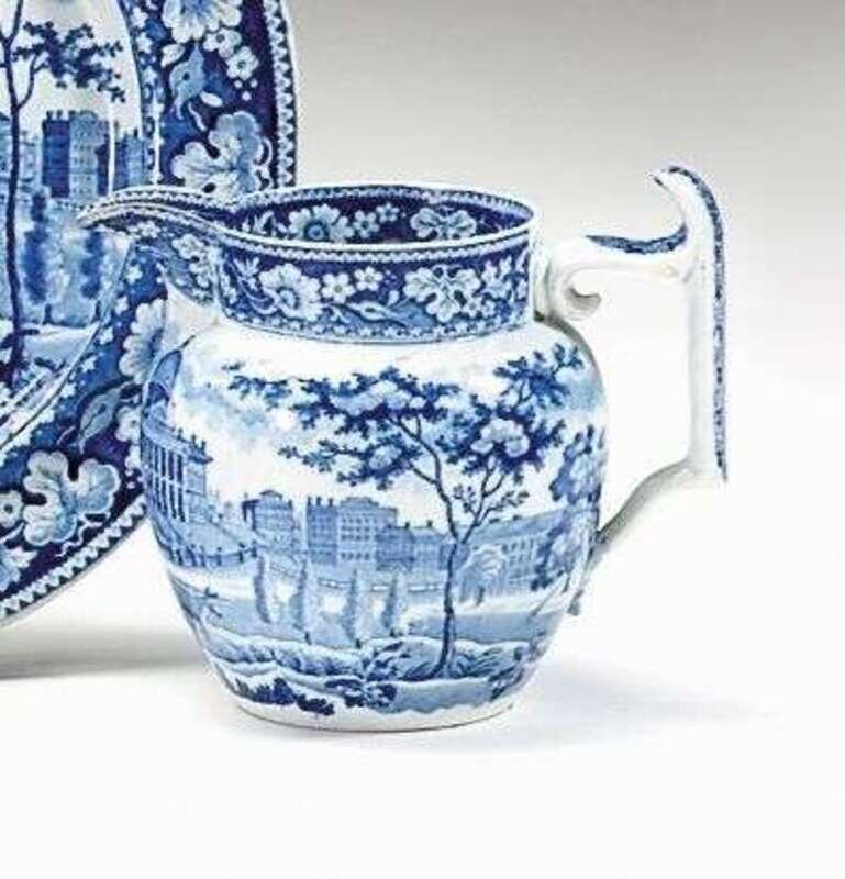 Historical blue transferware creamer john rogers and son, longport, 1815-1842