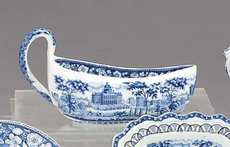 Rare historical blue transferware bordalou john rogers and son, longport, 1815-1842