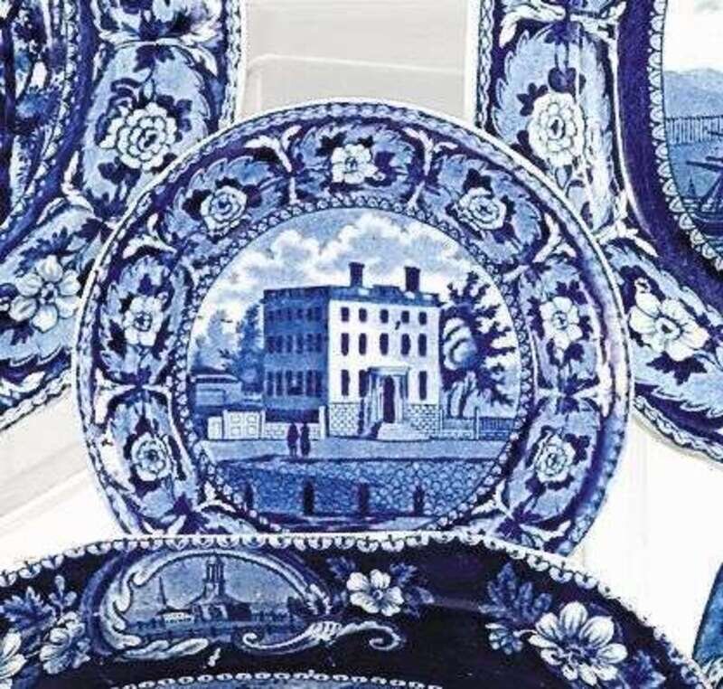 Historical blue transferware toddy plate john & william ridgway, hanley, 1814-1830