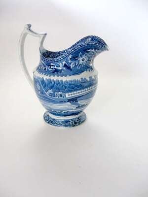 Historical Bbue transferware water pitcher joseph stubbs, burslem, 1790-1829