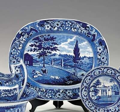 Historical blue transferware platter joseph stubbs, burslem, 1790-1829