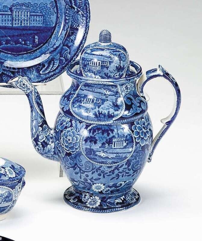 The baluster shaped body with domed lid decorated with oval reserves enclosing view of "Church in Virginia," enclosed by flower and scroll border.
