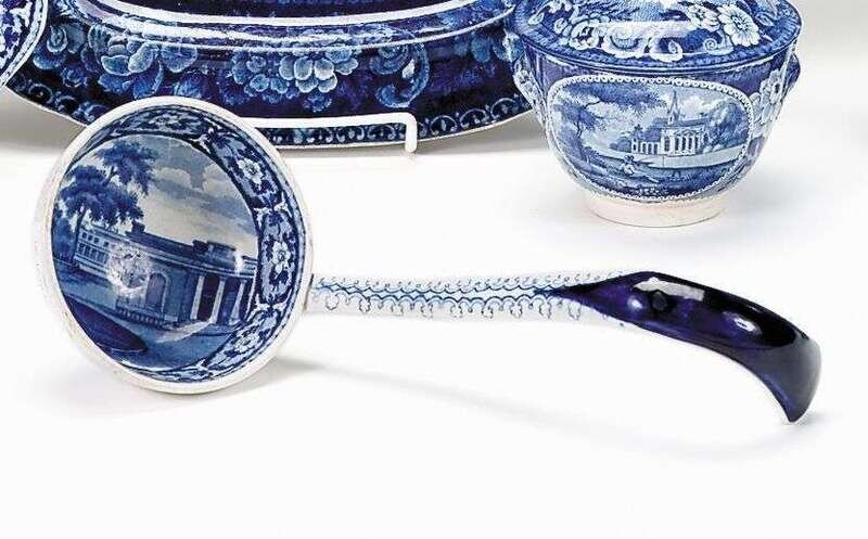 Historical blue transferware soup ladle john & william ridgway, hanley, 1814-1830