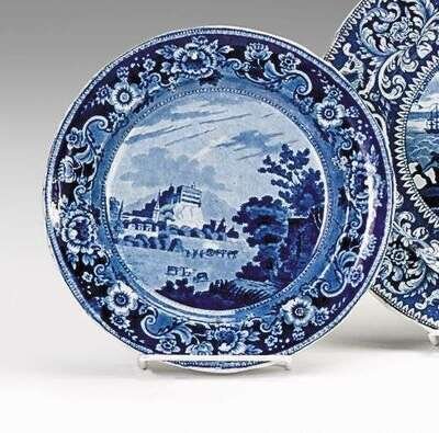 Historical blue luncheon plate a. stevenson, cobridge, 1816-1830, retailed by W. G. Wall