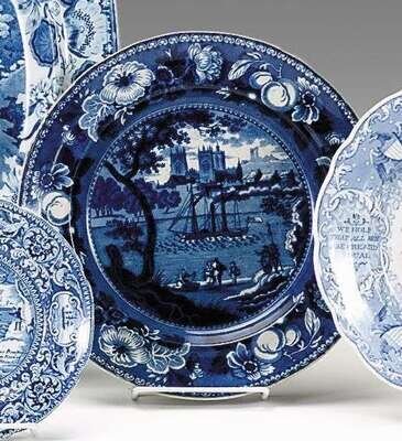 Historical blue transferware plate henshell and co., or haskell and williams, circa 1820