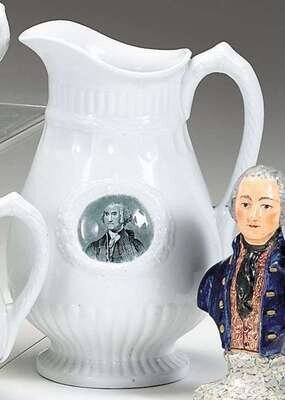 Of molded baluster form with reeded neck and foot with wreath surrounds enclosing portrait medallion of Washington.
