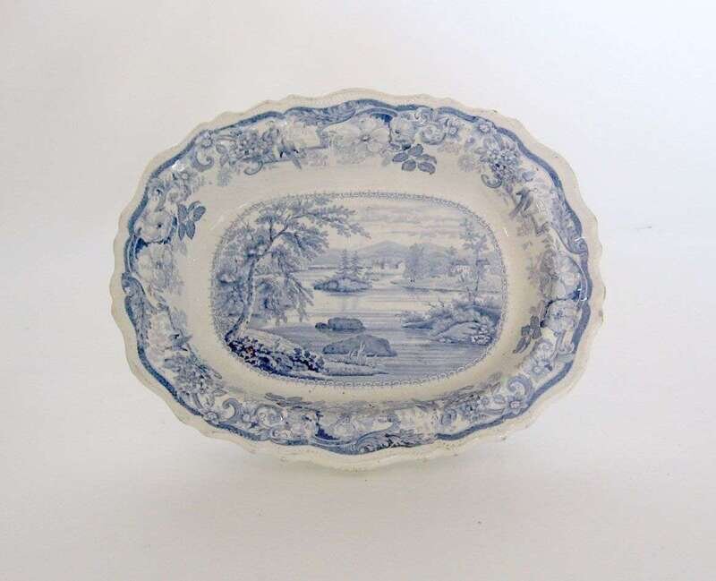 Historical medium blue transferware open vegetable clews, cobridge, 1829-1836
