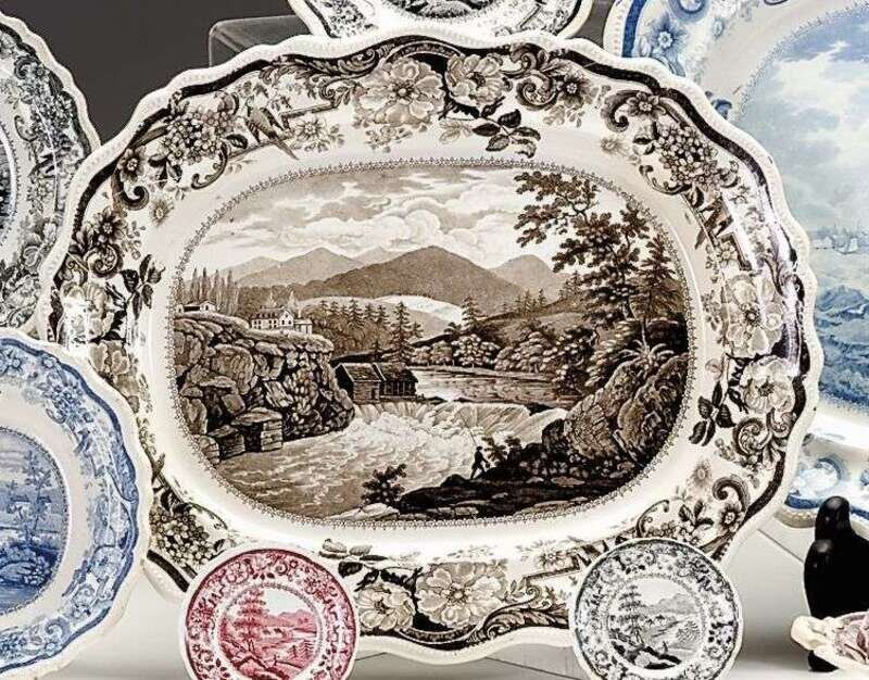 Historical brown transferware platter james and ralph clews, cobridge, 1829-1836