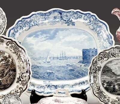 Decorated with "Picturesque Views- New York Hudson River" (Larsen No. 157) from Governor's Island.