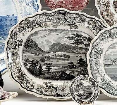 Historical black transferware platter james and ralph clews, cobridge, 1829-1836