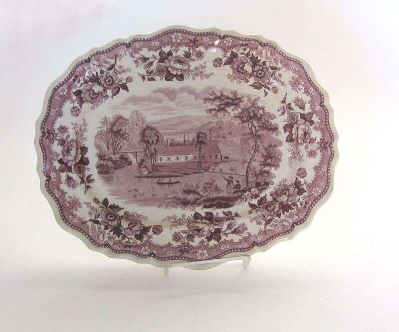 Historical purple transferware platter job and john jackson, burslem, circa 1830