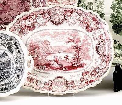 Historical pink transferware platter william adams, tunstall and stoke, 1827-1834
