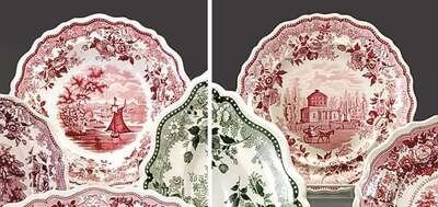 The first a soup plate decorated with "Hartford, Connecticut," the second a luncheon plate decorated with "The Waterworks Philadelphia."