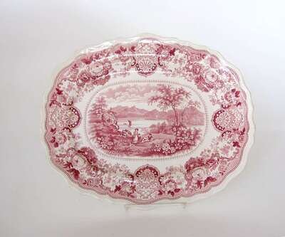 Historical pink transferware platter william adam & son, tunstall, circa 1834