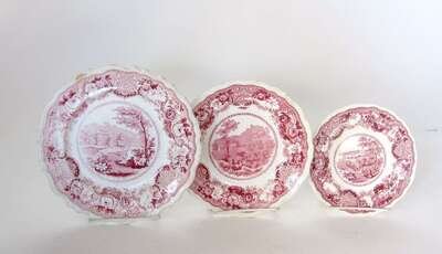 Three small historical pink transferware plates william adam & son, tunstall, circa 1834