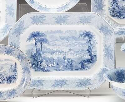 Historical medium blue transferware platter william ridgway, son & co., circa 1844