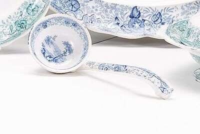 Historical light blue transferware ladle thomas godwin, burslem, 1834-1854