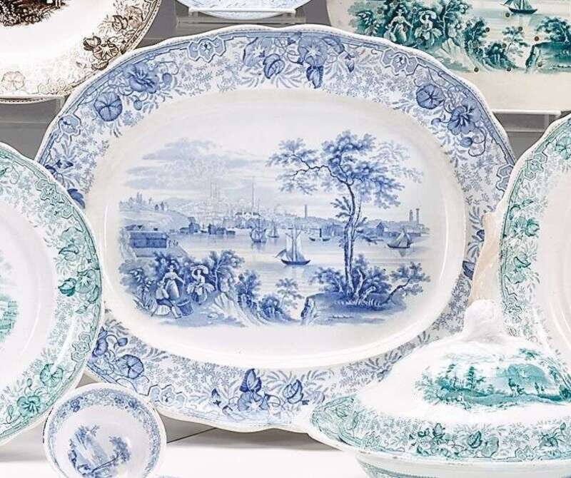 Historical light blue transferware platter thomas godwin, burslem, 1834-1854