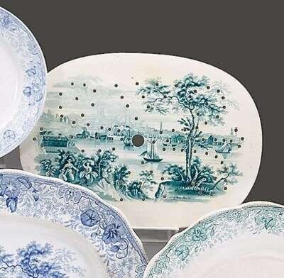 Historical green transferware strainer thomas godwin, burslem, 1834-1854