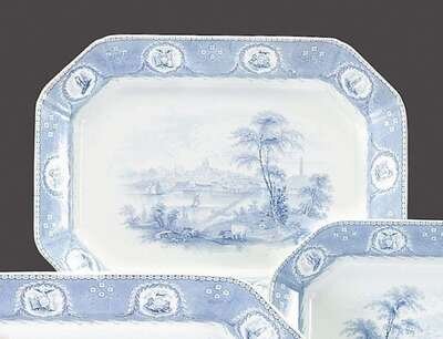 Historical light blue transferware platter mellor venables & co., burslem, 1843