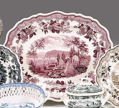 Historical purple transferware platter job and john jackson, burslem, circa 1830