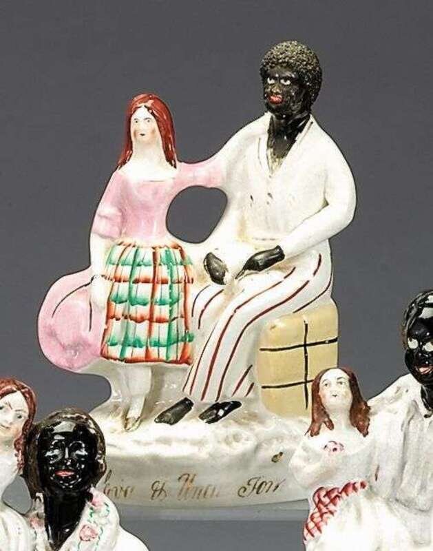 Staffordshire polychromed figural group of Uncle Tom and Eva second half 19th century