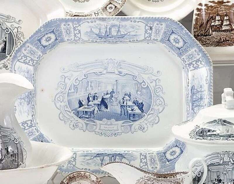 Of octagonal form, decorated with "Saloon" (Larsen No. 457), within a steamship medallion border, from the "Boston Mails" series.