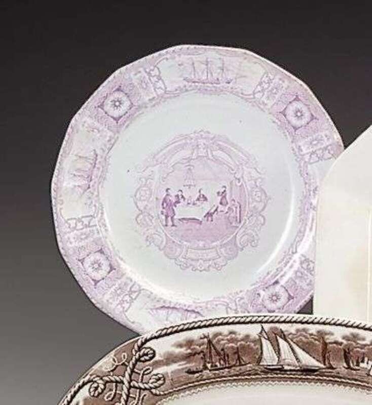 Of paneled form, decorated with "Gentlemen's Cabin" (Larsen No. 453), within a steamship medallion border, from the "Boston Mails" series.