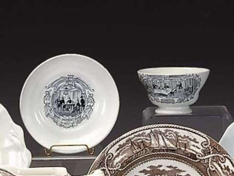 Black transferware teabowl and saucer james and thomas edwards, burslem, 1825-1843