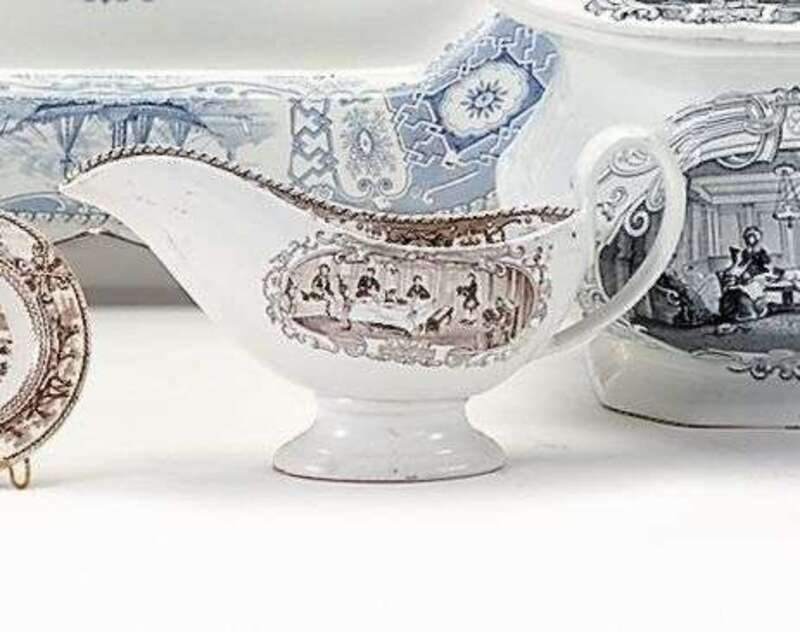 Brown transferware gravy boat james and thomas edwards, burslem, 1825-1843