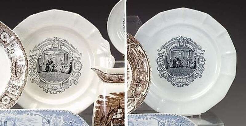 Black transferware plate and tray james and thomas edwards, burslem, 1825-1843