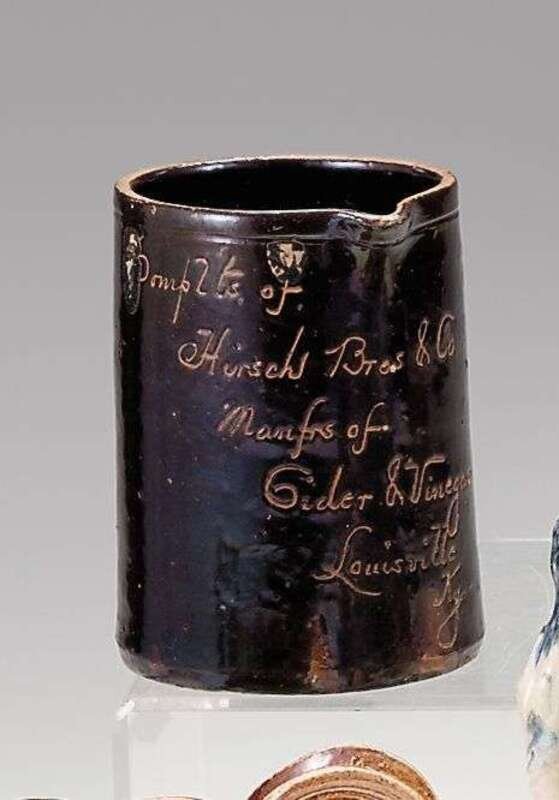 Cylindrical form with molded rim, incised "Comp' ts of Hirsch Bros & Co. Mangrs of Cider & Vineger Louisville KY."