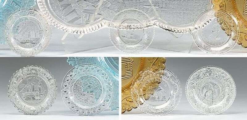 Group of seven uncolored pressed glass cup plates attributed to boston and sandwich glass co., sandwich, mass,