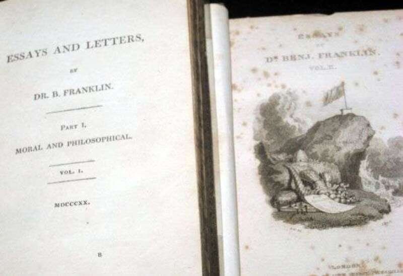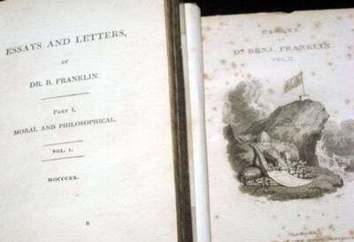 Two vols., Franklin, Dr. B., "Essays and Letters Part I, Moral and Philosophical, Vol. 1" and "Essays and Letters, Part II, Commercial and Political, Vol. II" publishedby john sharpe picadilly, london, 1820, printed by t. davison, whitefriars