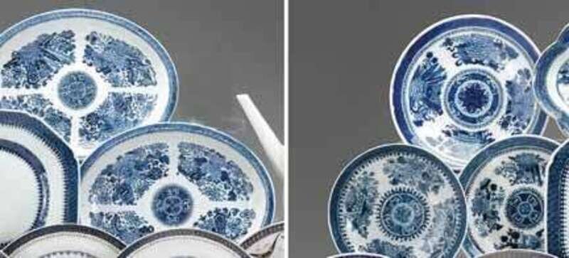 Together with two blue "Fitzhugh" pattern saucers and a small plate (5).