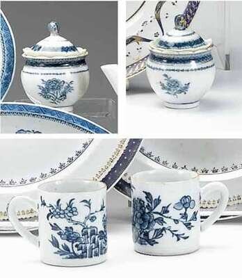 Pair of Chinese export porcelain blue and white pots-de-creme and a pair of miniature mugs 18th/19th century