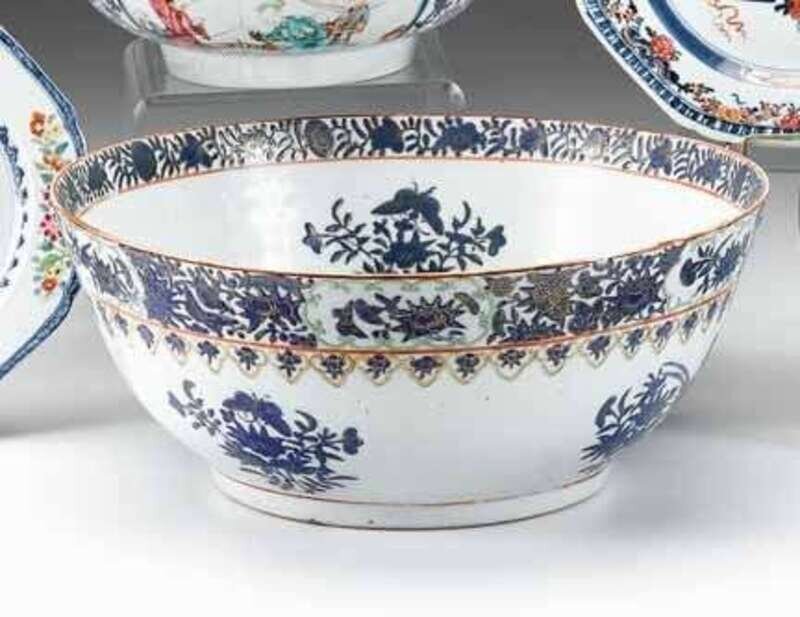 Chinese export porcelain blue enamel and gilt decorated punch bowl 19th century