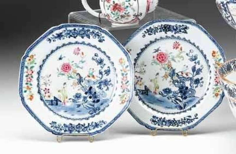 Pari of Chinese export porcelain polychrome luncheon plates 19th century