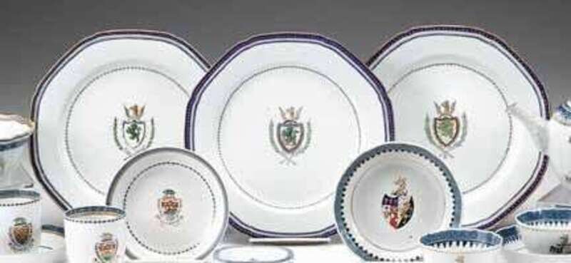 Set of three Chinese export porcelain Elian Morgan armorial plates circa 1795