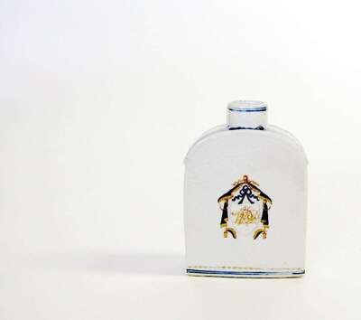 Chinese export porcelain tea caddy circa 1800, probably made for the american market