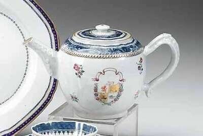 Chinese export porcelain enamel and gilt decorated armorial teapot