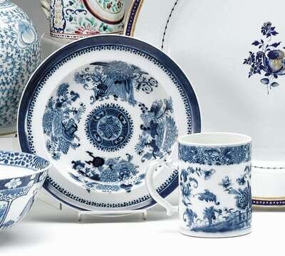 Chinese export porcelain "Fitzhugh" pattern soup plate and blue and white porcelian mug