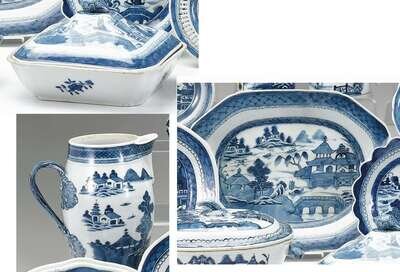 Chinese export porcelain blue and white platter, covered vegetable and cider jug 19th century