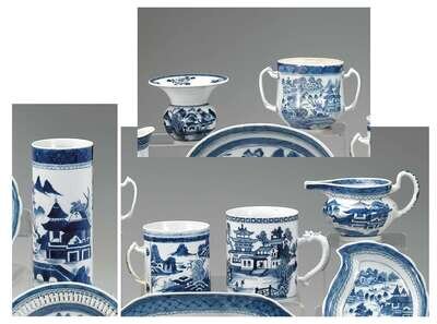 Including two mugs, a tall cylindrical vase, a small pitcher, a two handled covered sugar and a small vase.